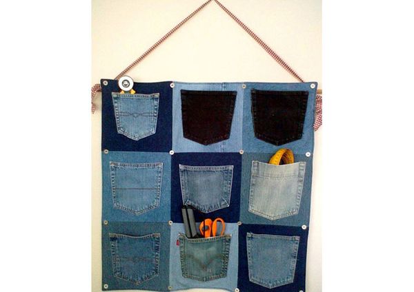 1. Органайзер с карманами. Счастливые обладатели гаража или мастерской знают, как ценны места, куда можно положить мелкие (и не очень) инструменты и расходники. Почти все мужчины в тайне мечтают носить жилетку с множеством карманов, как Анатолий Вассерман, просто не решаются . Но мы в силах им помочь, если сделаем им в подарок органайзер! Для этого из плотной ткани – мебельная или джинса – выкраивается полотно произвольной формы и размера (можно во всю стену, а можно размером с поварской фартук, круглый или прямоугольный вариант). На полученное полотно нашиваем крепеж – тесьма от края до края верхней границы или даже люверсы, а на лицевой стороне крепим карманы – большие, маленькие и чем больше, тем лучше!